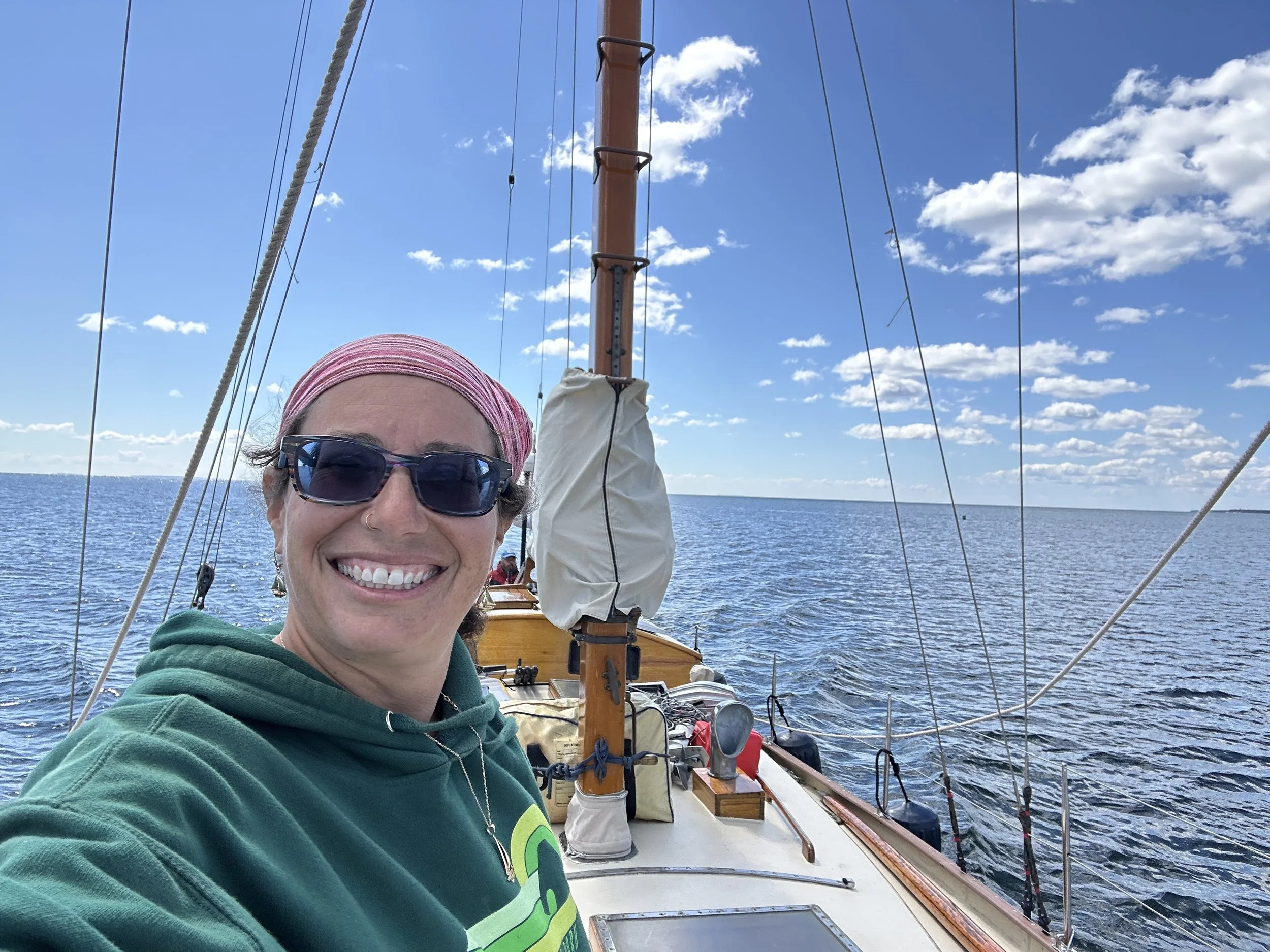 We get to capture Aeolus underway to Egg Harbor and cross wakes with two people we have met from far away
